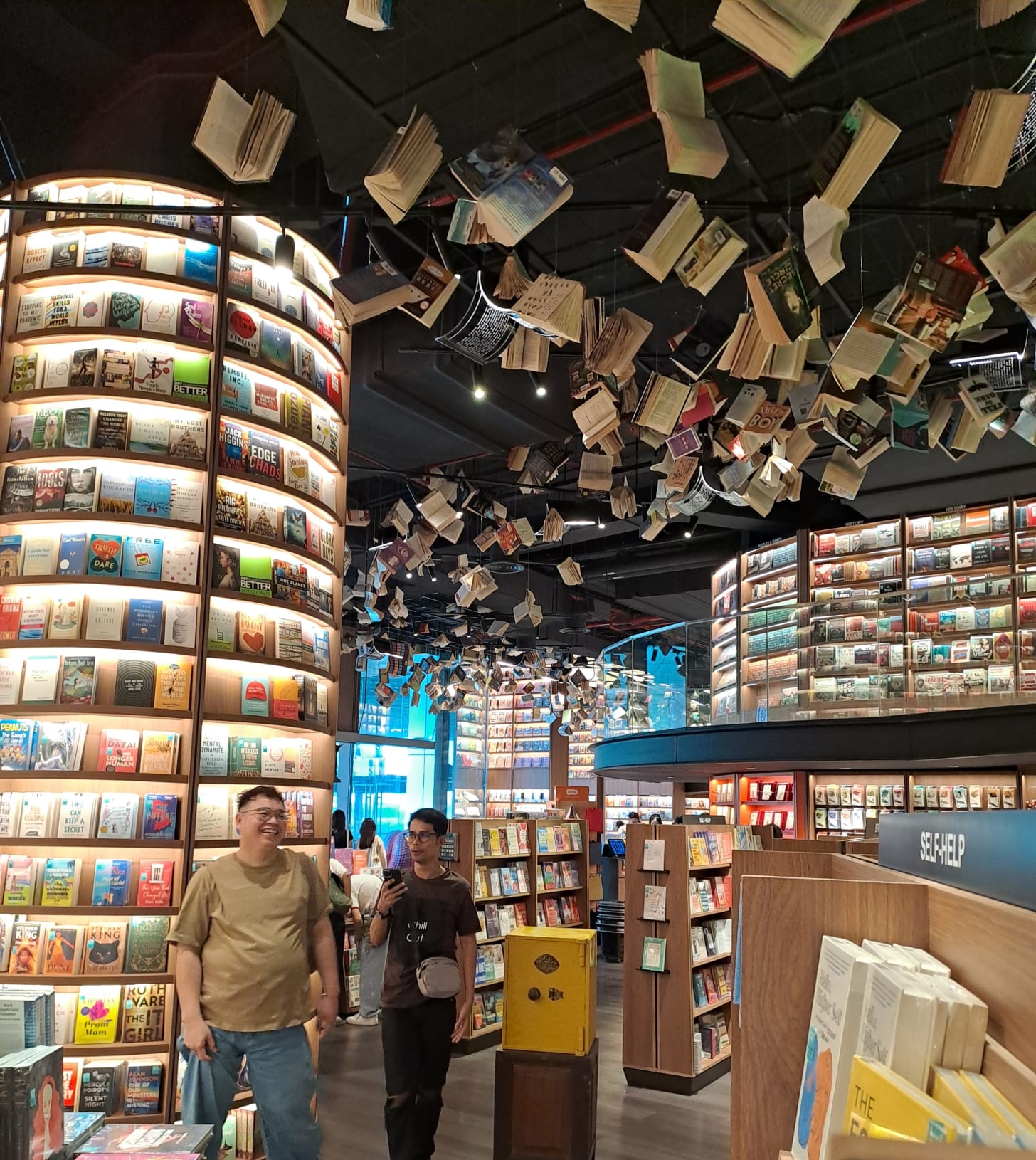 One section of the store features the “Flying Book Installations” which are actually suspended books held by strings that add movement and magic to the space.